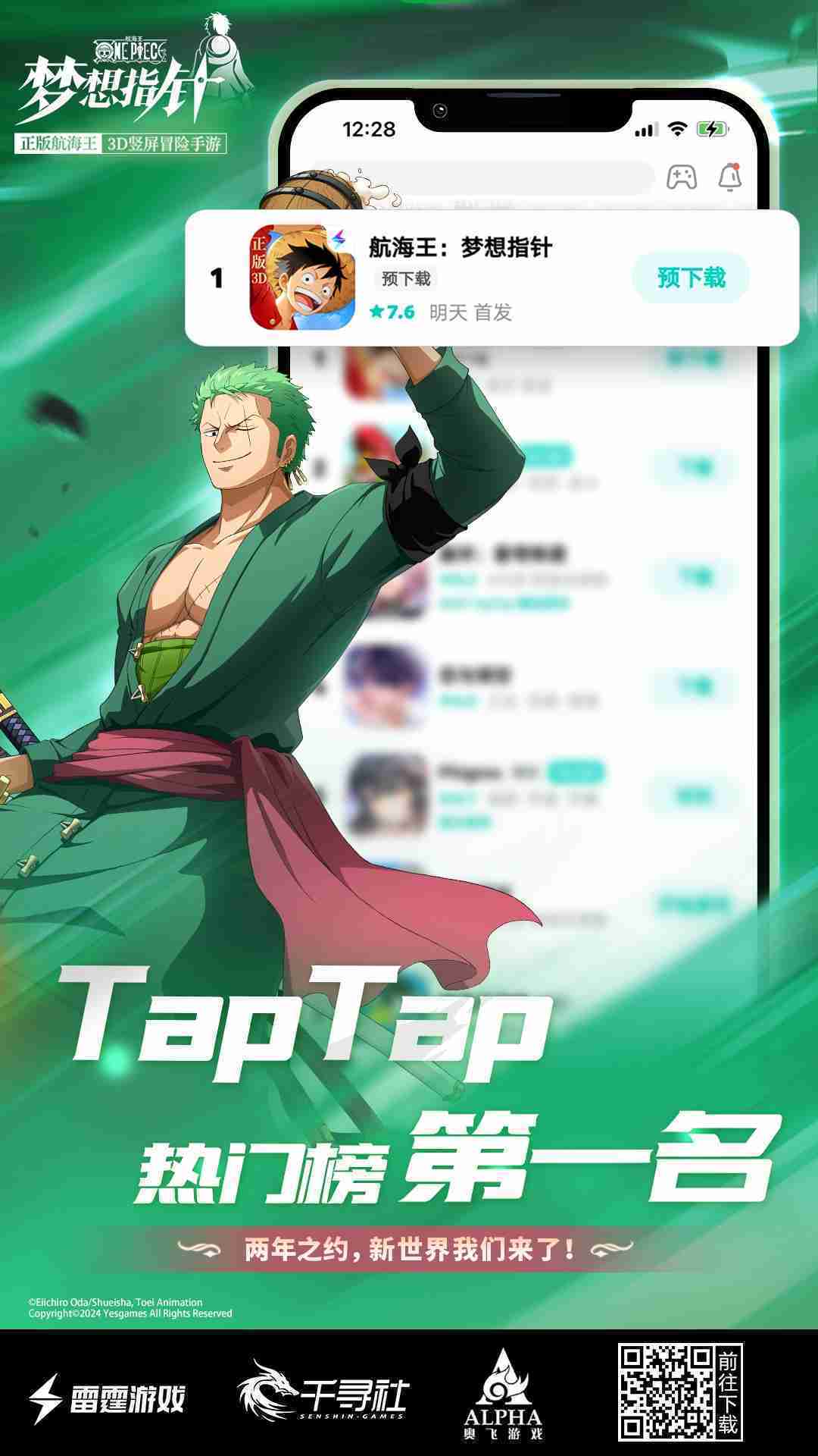 4月1日,,手游《航海王::梦想指针》正式公测,,上线仅2小时不到就登上了App Store免费榜Top1,,,,与TapTap热门榜第一。。。