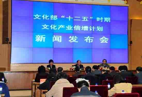 2月28日下午,,文化部在京召开新闻发布会,,正式向社会发布《文化部“十二五”时期文化产业倍增计划》,,,,提出了 “十二五”期间文化部门管理的文化产业增加值年平均现价增长速度高于20%,,2015年比2010年至少翻一番,,实现倍增的奋斗目标。。